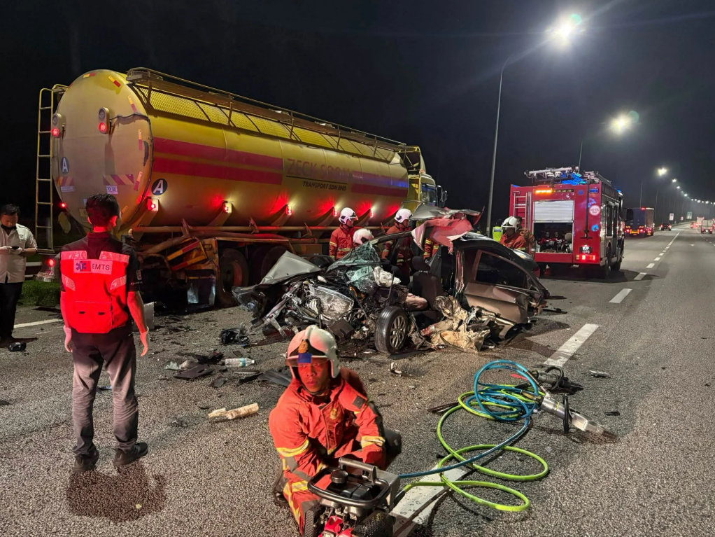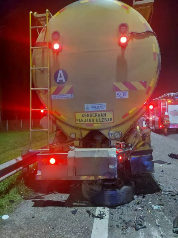 The collision took place at approximately 4.30am. According to preliminary reports, the Proton Saga crashed into the rear of the tanker lorry, which was stationary on the emergency lane at the time. The impact caused significant damage to the front portion of the car. Immediate emergency response was triggered when the Negeri Sembilan Fire and Rescue Department received a distress call at 4.29am.
